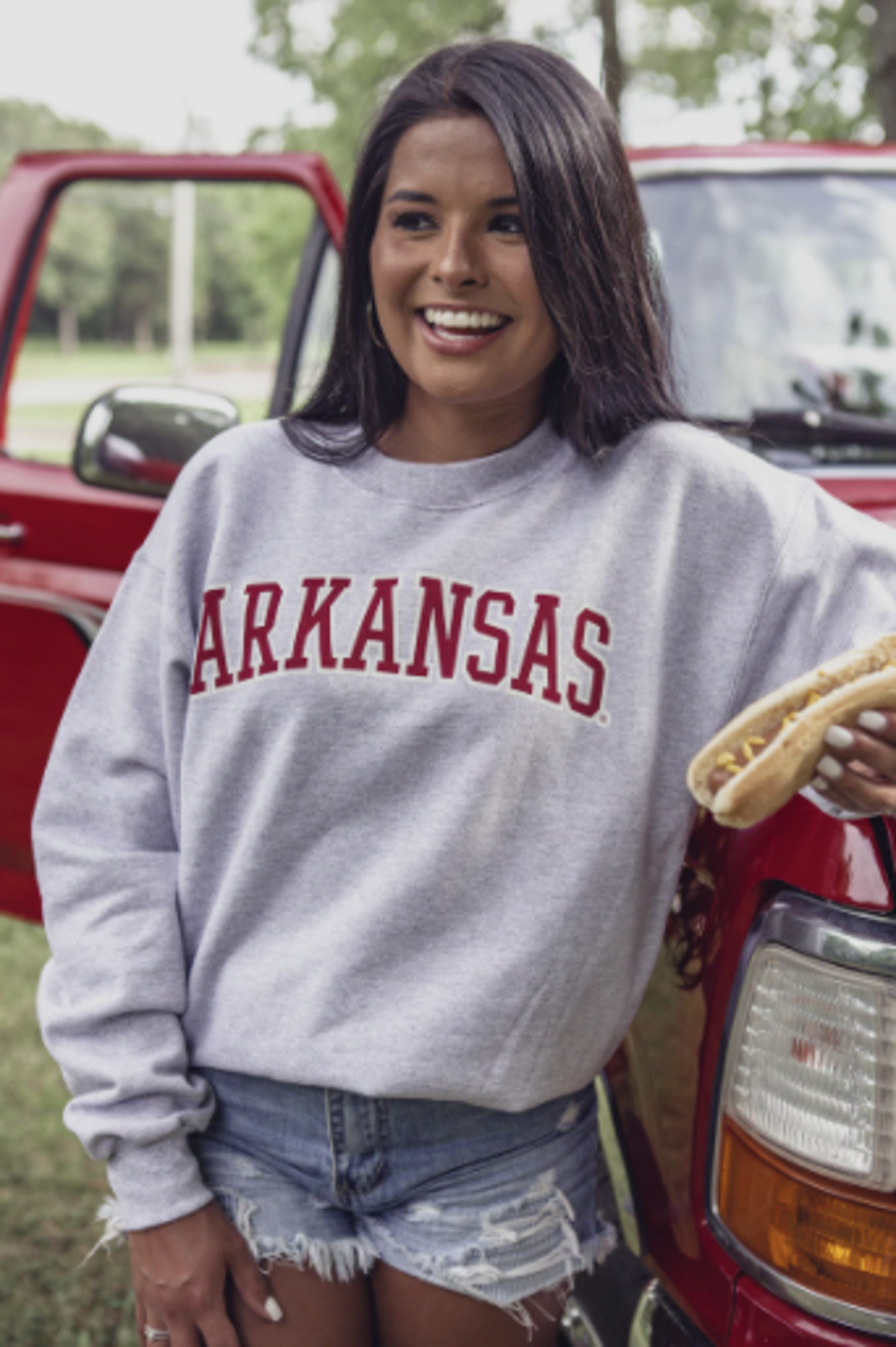 It's the classic Arkansas sweatshirt you'll keep in your closet for years to come. Not only does this sweatshirt sport a timeless Arkansas logo, it is on our most popular sweatshirt yet making it a cozy gameday necessity year after year.