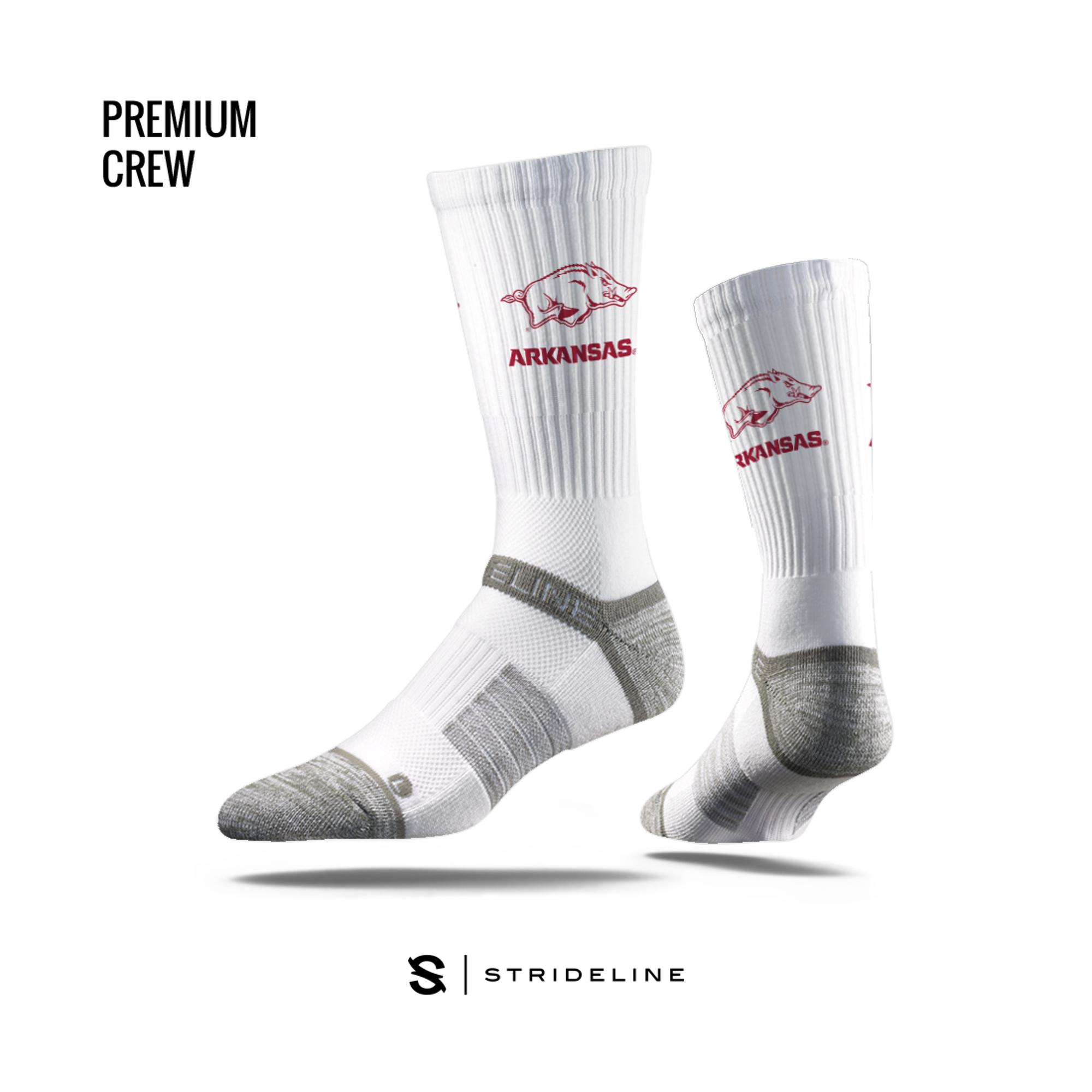 Arkansas Razorbacks Strideline Premium Running Hog Crew Socks - White