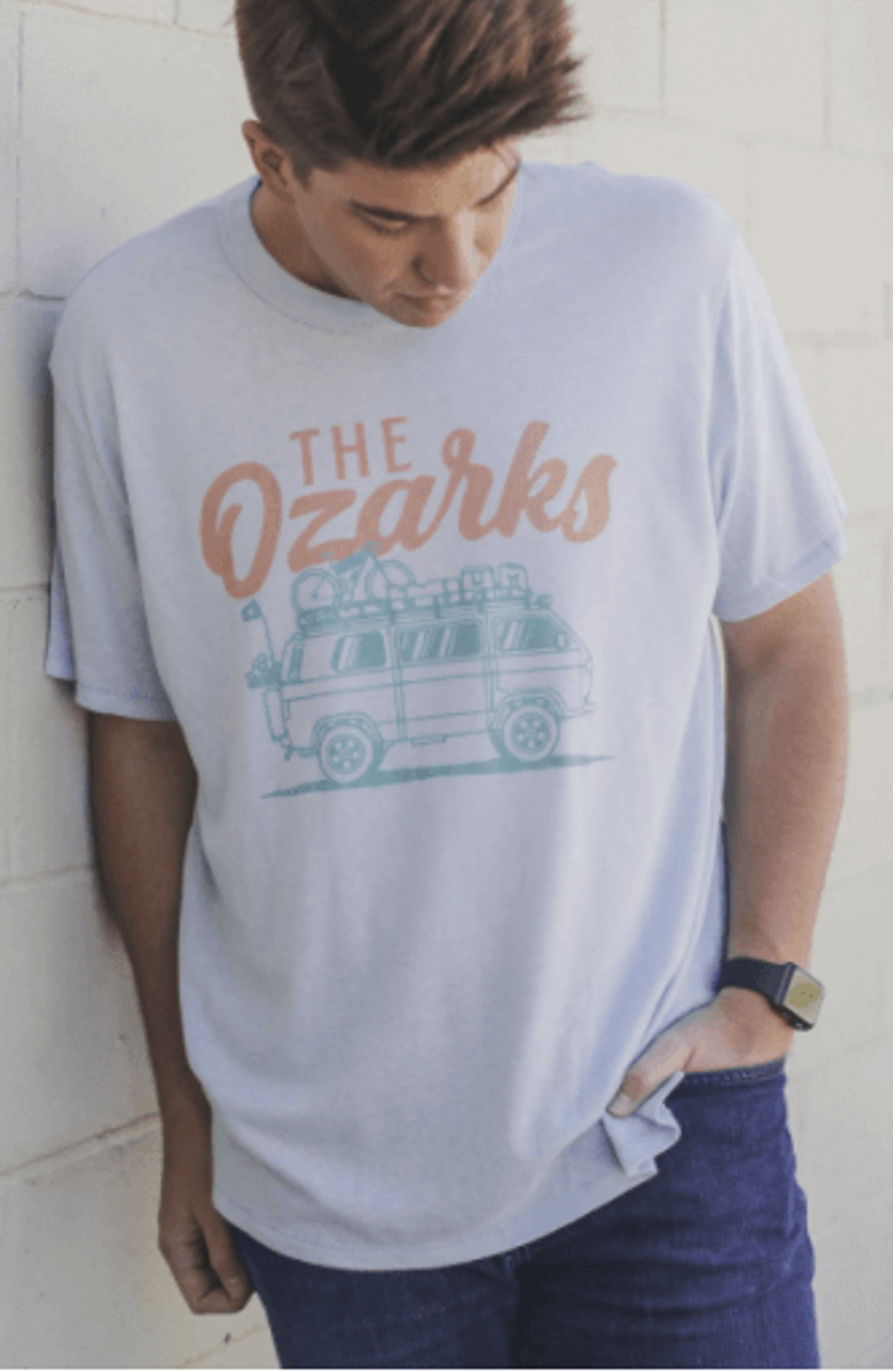 The perfect road trippin' tee. Super soft 50% cotton, 50% polyester blend short sleeve crewneck tee "The Ozarks"